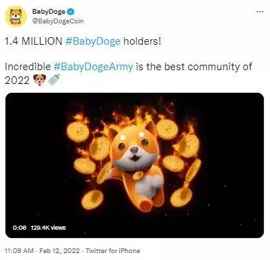 Continuing the trend, BabyDoge is also looking to enter the metaverse as per a recent tweet. On February 9th, a video was posted on its official Twitter account with the avatar traipsing in a meta ecosystem. The subsequent tweet read, ‘@decantraland do you like baby doges?’